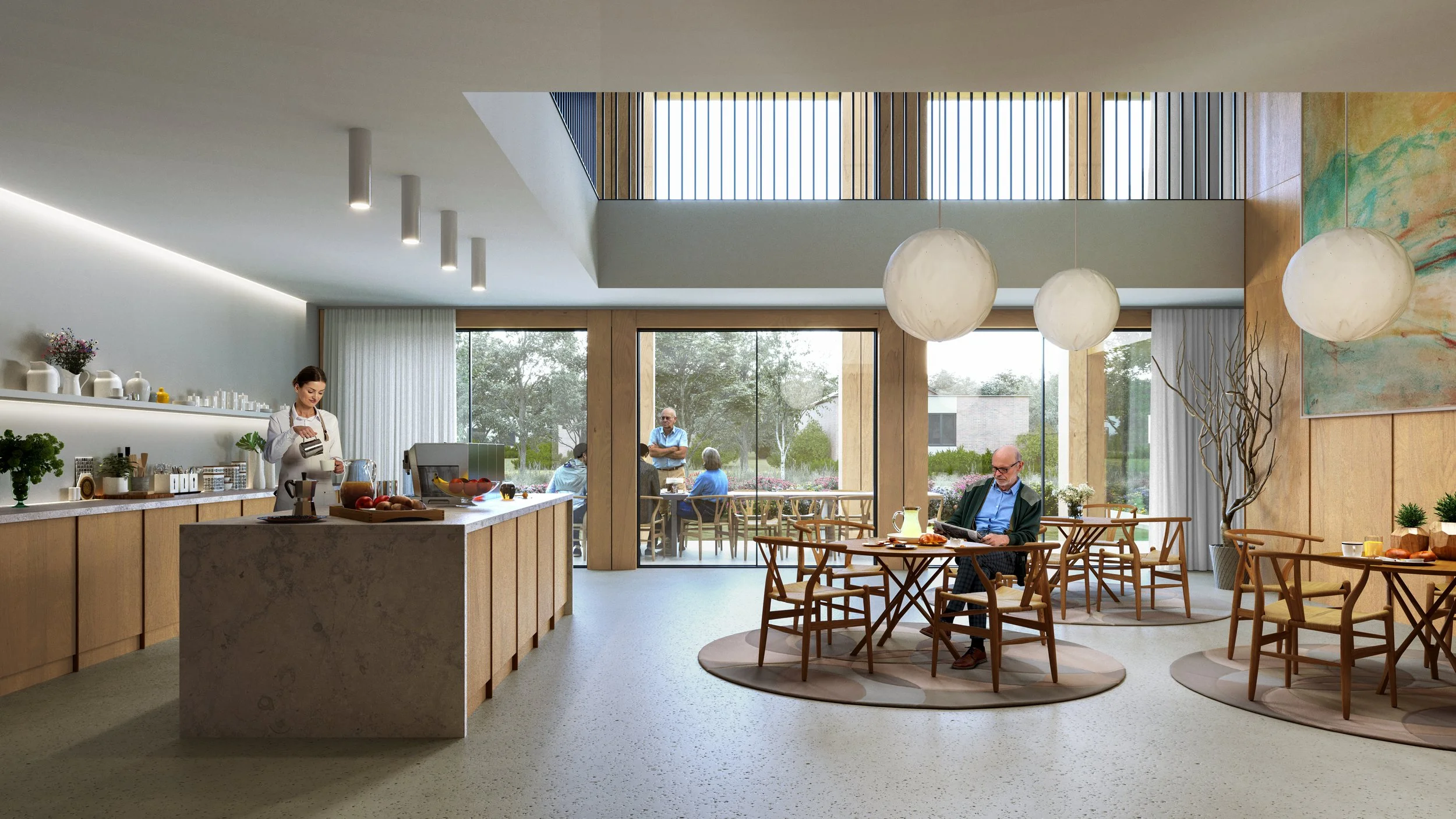 A space to dwell in with all five senses. The sound of birdsong is elicited when enough trees are planted. The aroma of freshly baked pastries wafts from the cafe. Natural materials are soft to the touch and gain a beautiful patina over time. The taste of home-cooked food and views towards a flourishing meadow garden.